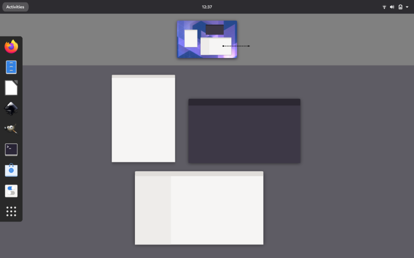 As you can see in the above mockup there is some redundancy between the Workspace Selector and the Activities Overview: in both all open (active) windows are shown!