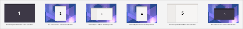 Imagine you have six applications opened on six workspaces (in other words: every application has it's 'own' workspace). Below you can see how each workspace and application would look like.