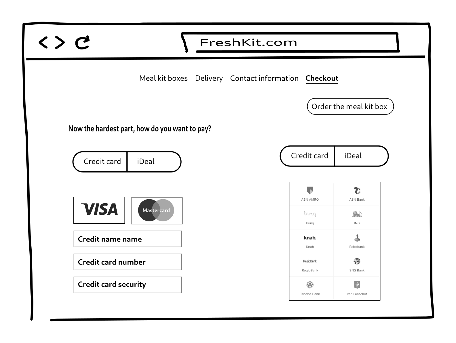 • When a customer wants to bay by debit card he/she must be asked if he/she wants to pay by iDEAL (a Dutch payment system). When the user agrees he/she only has to enter the name of the bank and the payment process will start.