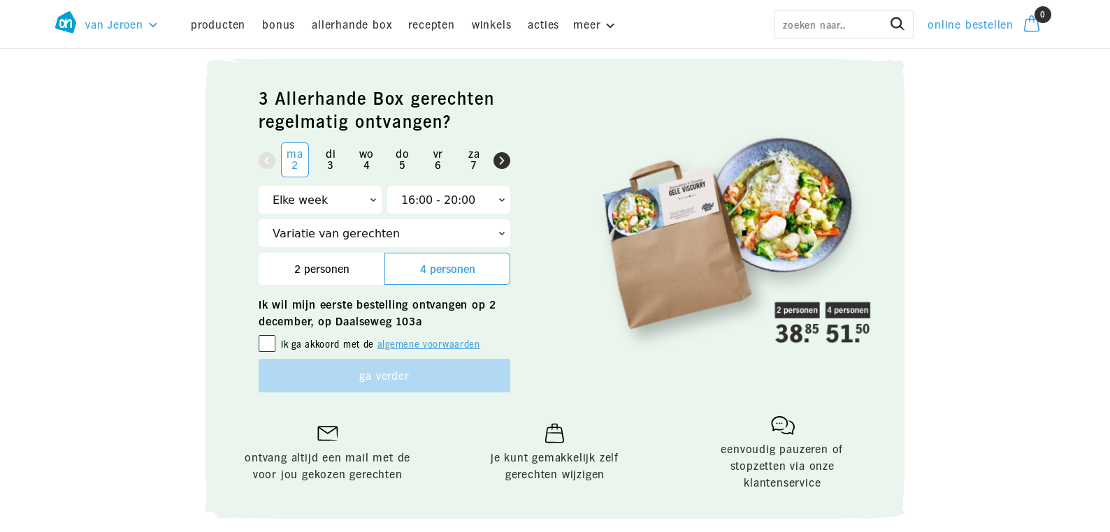 There is hardly any description of how the service works and what the possibilities are. What’s not clear from the website is that Albert Heijn doesn’t offer any plans based on a certain diet. Instead every week you can order a different kind of meal. It’s no different than buying one of the other products on their website.